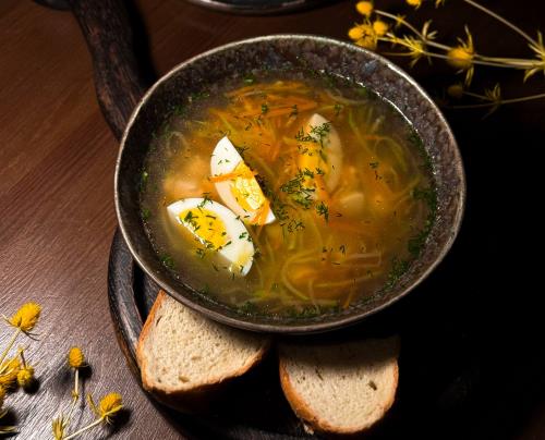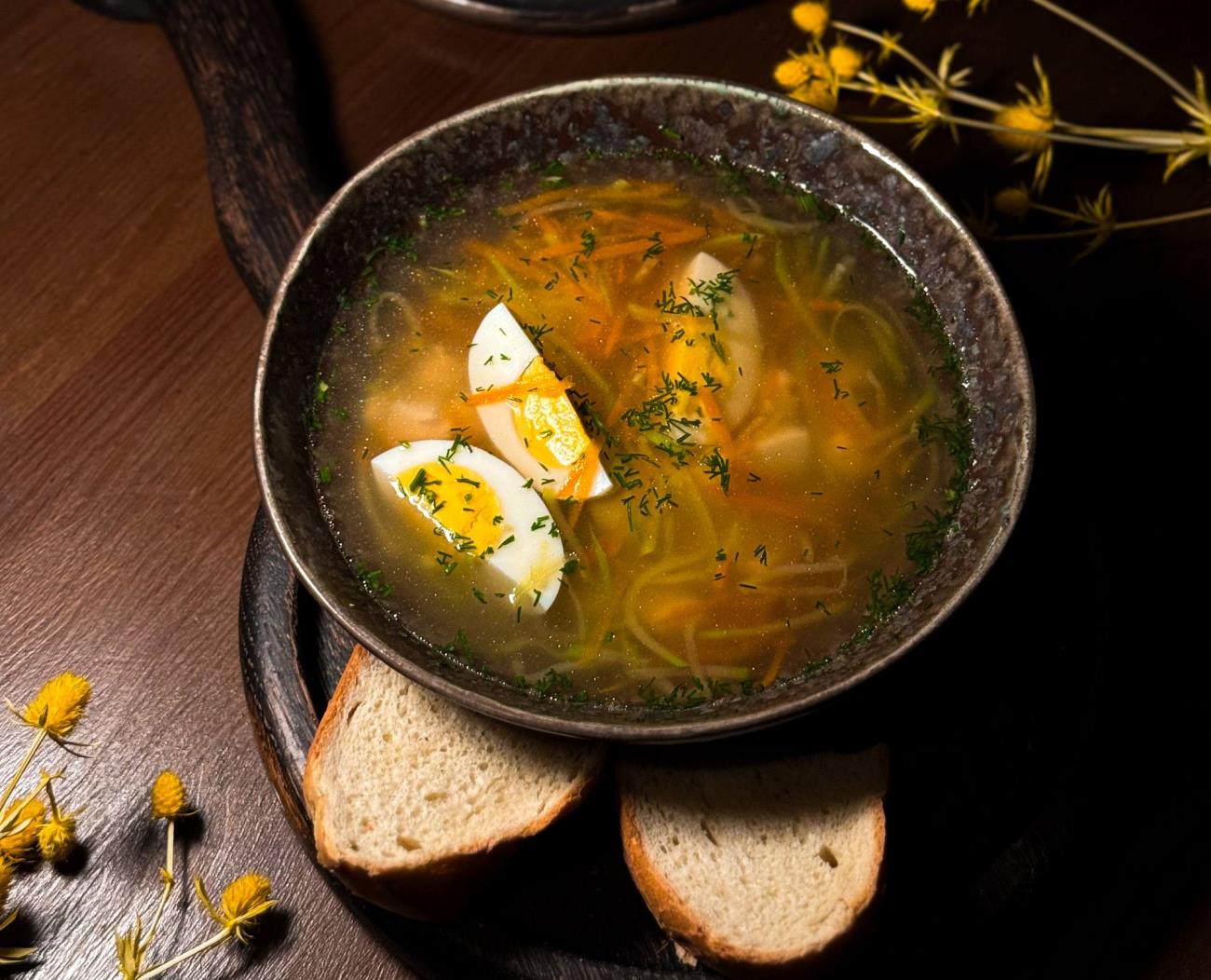 Пикантный суп с морепродуктами курицей и овощами в сопровождении с кокосовым молоком, специями и зеленью